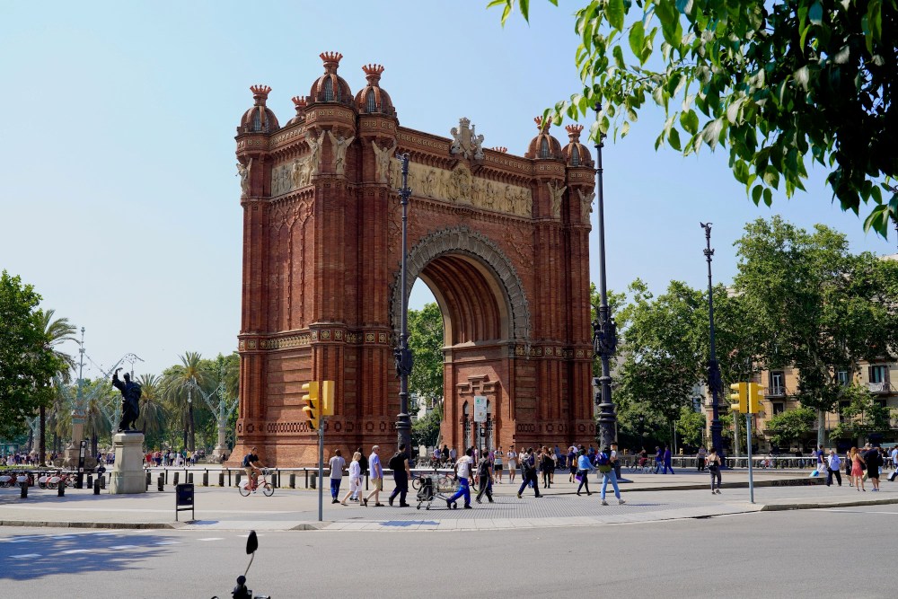 The Arc de Triomf is a triumphal arch built as the main access gate for the 1888 Barcelona World Fair. The arch crosses over the central promenade of the Passeig de Lluís Companys, leading to the Ciutadella Park that now occupies the site of the world fair.
