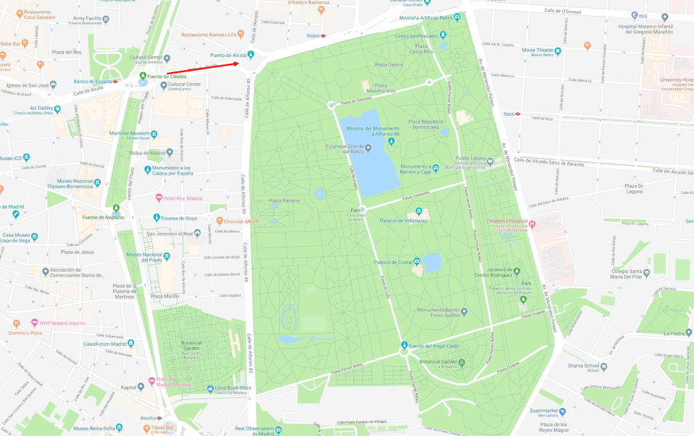 Directions: From Paseo del Prado, take a right on Calle de Alcalá.