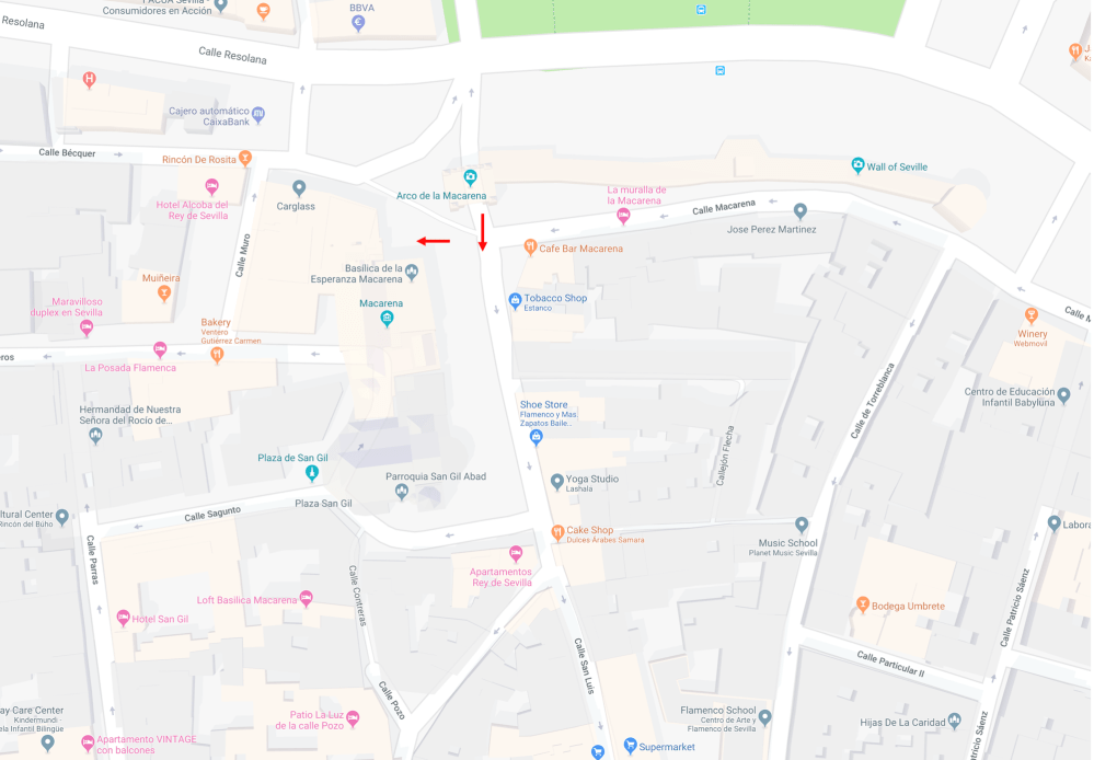 The Puerta de la Macarena is one of the only three city gates that remain today of those from the walls of Seville. Although the enclosure walls of the city was built in time of Julius Caesar, the gate corresponds to the extension made by the Sultan Ali ibn Yusuf in the 12th century, and its present appearance is the result of a remodeling carried out between the years 1723 and 1795.