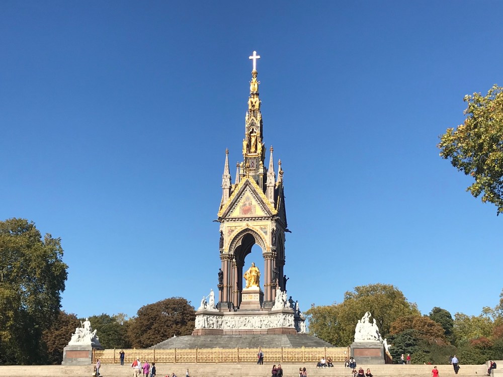 The Albert Memorial is situated in Kensington Gardens, London, directly to the north of the Royal Albert Hall. It was commissioned by Queen Victoria in memory of her beloved husband Prince Albert, who died in 1861.